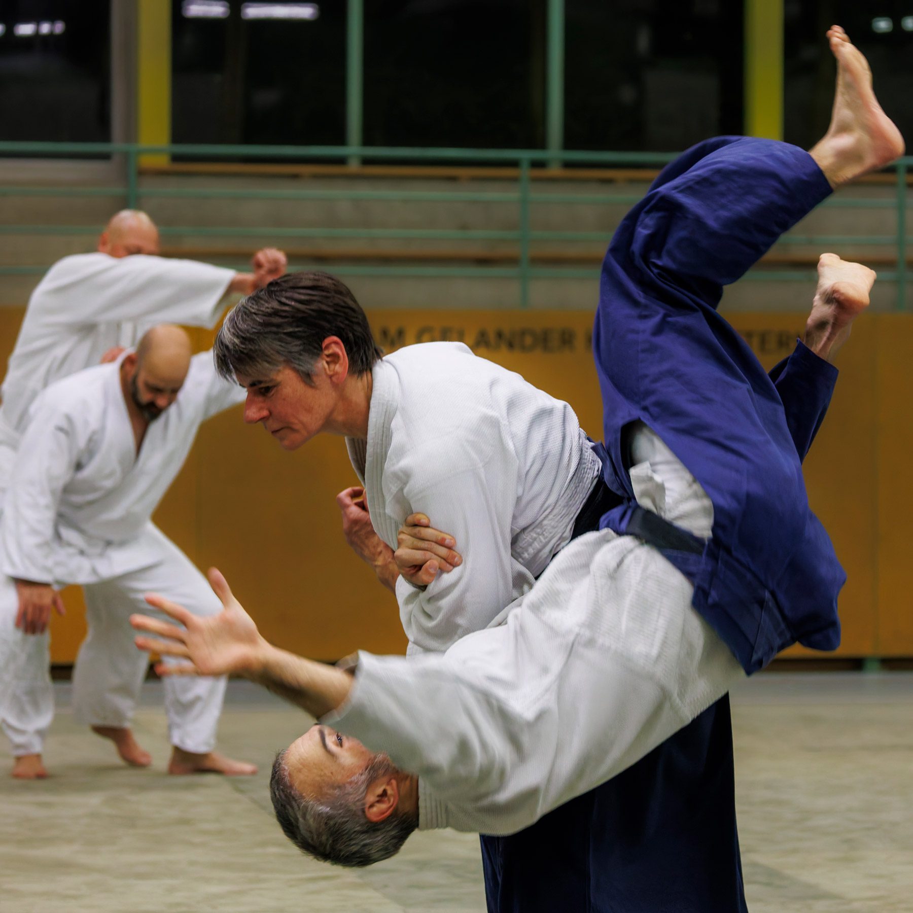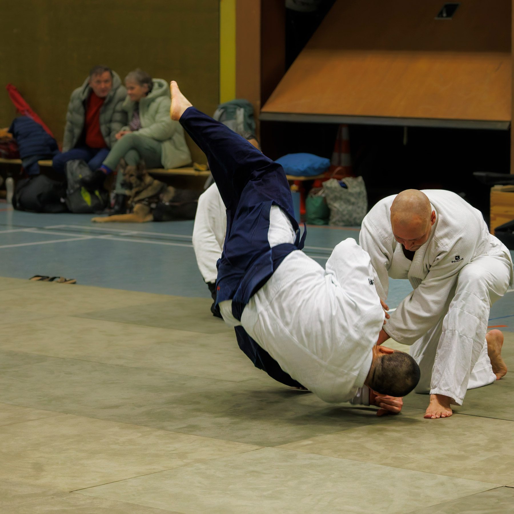 Besonders positiv fiel vielen Teilnehmenden der Schwerpunkt auf Ukemi auf. Ein Bereich, der auf Lehrgängen oft zu kurz kommt, bekam hier bewusst Raum. Es ging nicht nur ums Fallen, sondern um Wahrnehmung, Timing und Vertrauen – in den Partner und in sich. Für einige war das anstrengend, für viele überraschend, für alle eine echte Bereicherung.