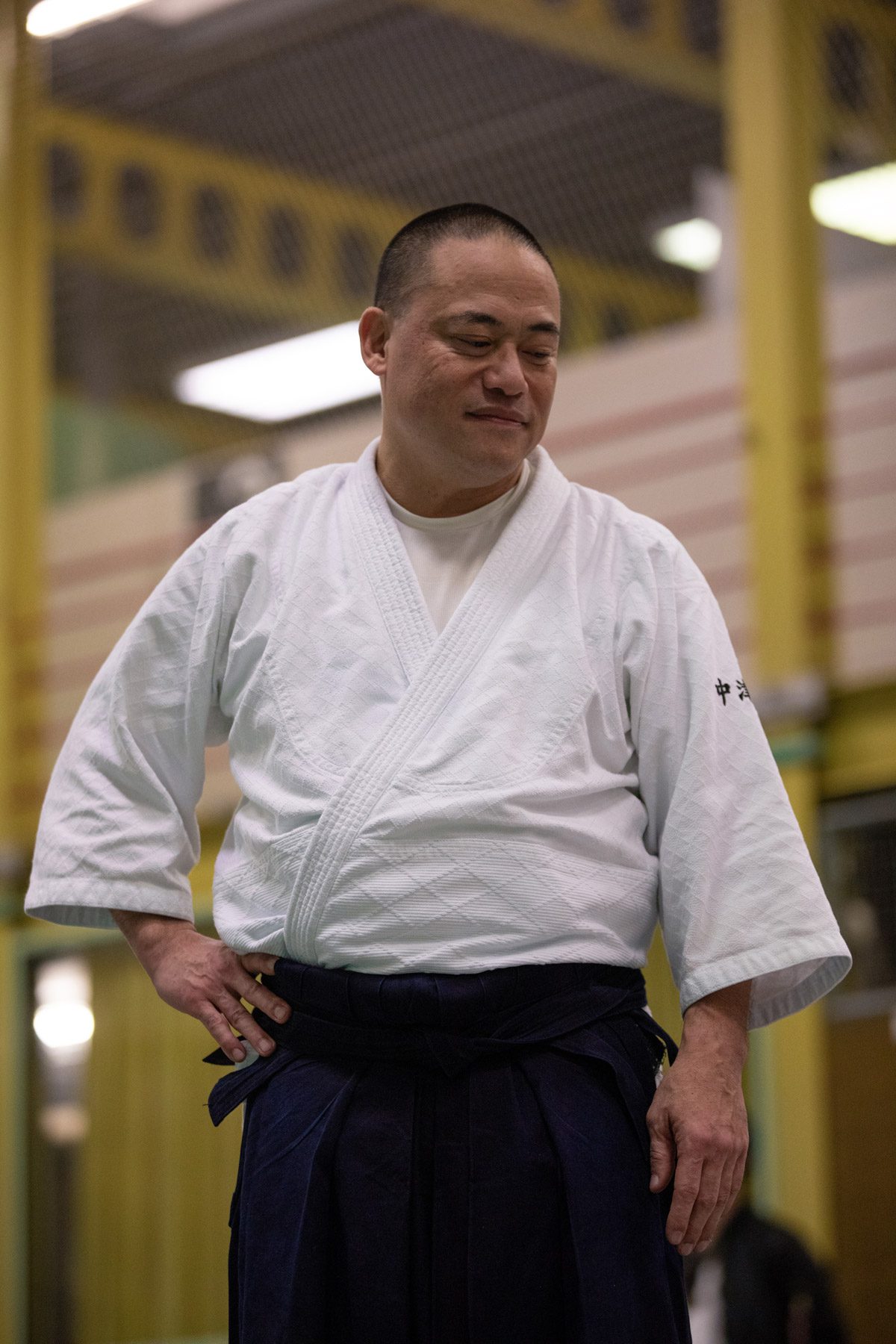 Ein zentrales Thema des Lehrgangs war die bewusste Rückkehr zu den Grundlagen. Immer wieder führte Junya Sensei die Übungen auf scheinbar einfache Ausgangspunkte zurück: Stand, Abstand, Verbindung. Dinge, die man kennt – oder zu kennen glaubt. Gerade darin lag die Herausforderung. Bekannte Bewegungen wurden plötzlich unbequem präzise. Kleine Korrekturen hatten große Wirkung. Anfänger wie Fortgeschrittene profitierten gleichermaßen von seinem scharfen Blick und den gezielten, persönlichen Hinweisen.